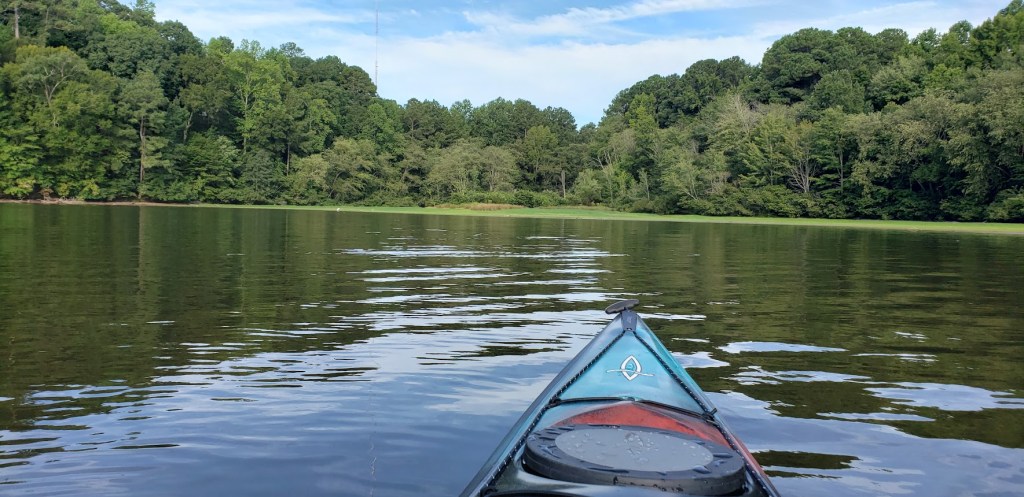 Note that you may be sharing the water with Rowing teams out early for some exercise. Motorized boating is also allowed when water levels are high enough. I’ve been lucky enough to Kayak Lake Wheeler when the water was a bit low and it was just me and a couple of Crew teams out rowing. The lake is super peaceful like this.